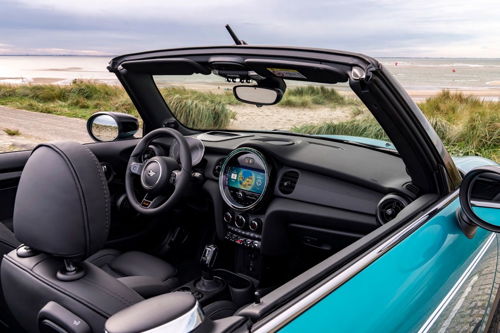 El estilo exterior es icónico y la cabina tiene toques únicos, como los indicadores de inspiración aeronáutica. También cuenta con una pantalla táctil de 8,8 pulgadas enclavada en un gran bisel circular.